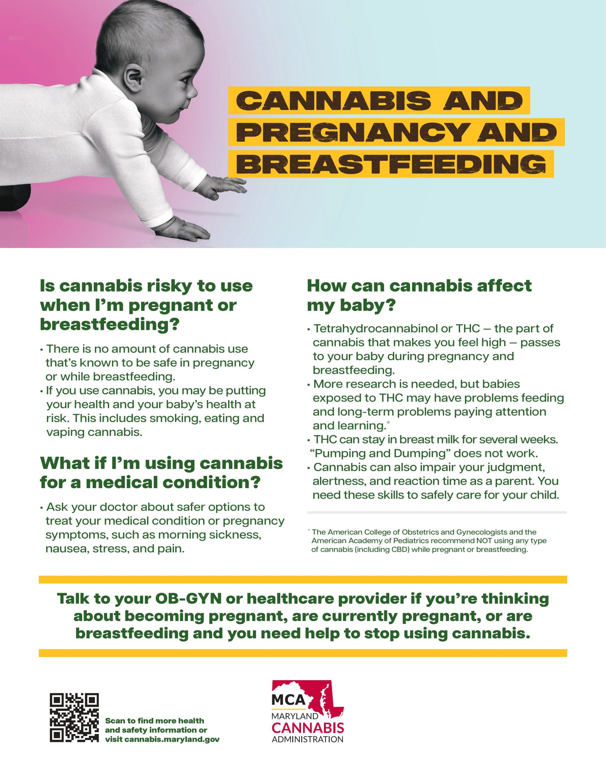 - Maryland Cannabis Administration — Pregnancy Fact Sheet (PDF)