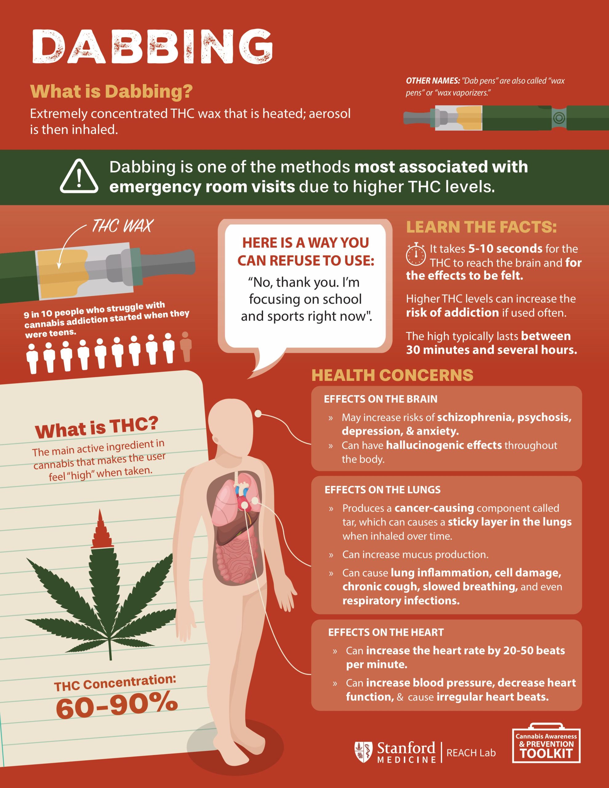 - Can lead to cannabis use disorder (addiction) and withdrawal symptoms