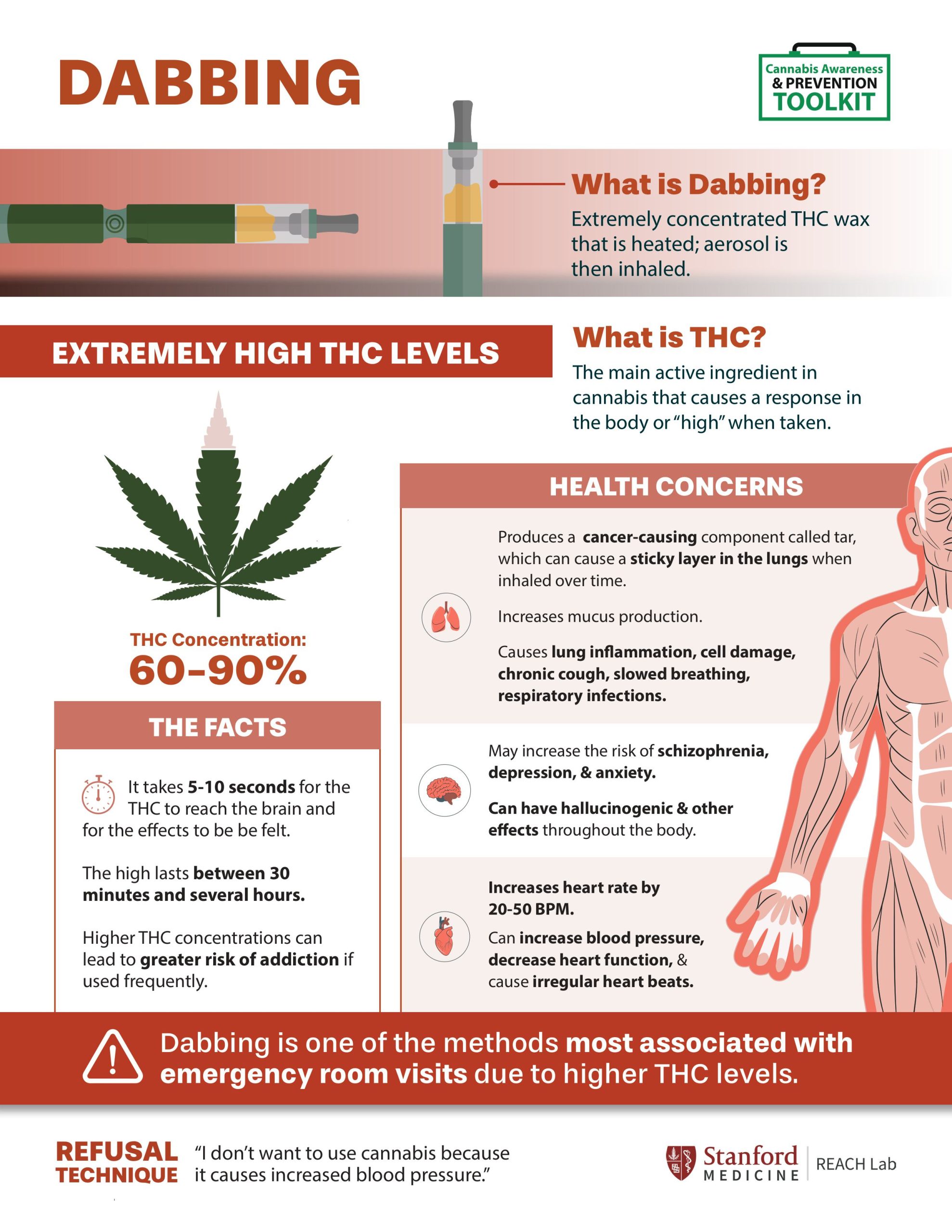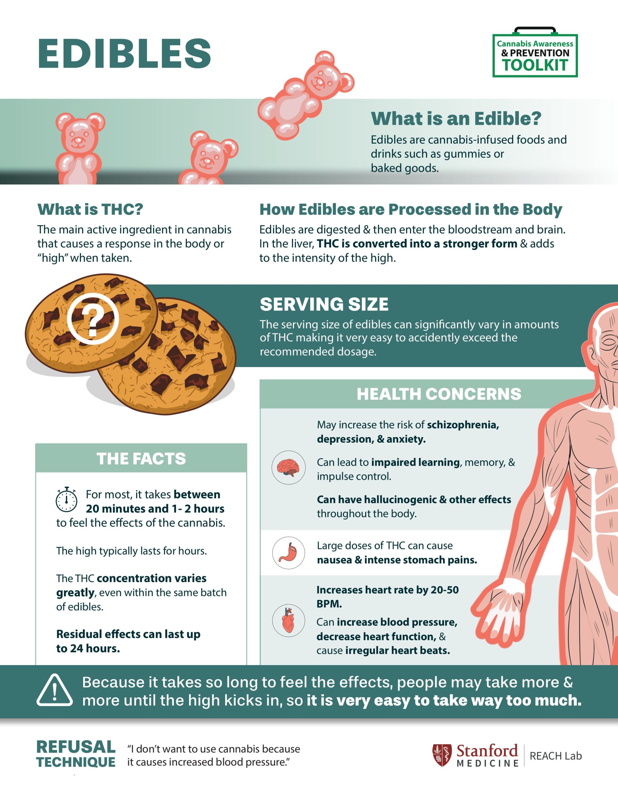 - Know the facts — stay informed about the types of cannabis, its effects, and laws around cannabis. Use sources like CDC and SAMHSA for credible research.
