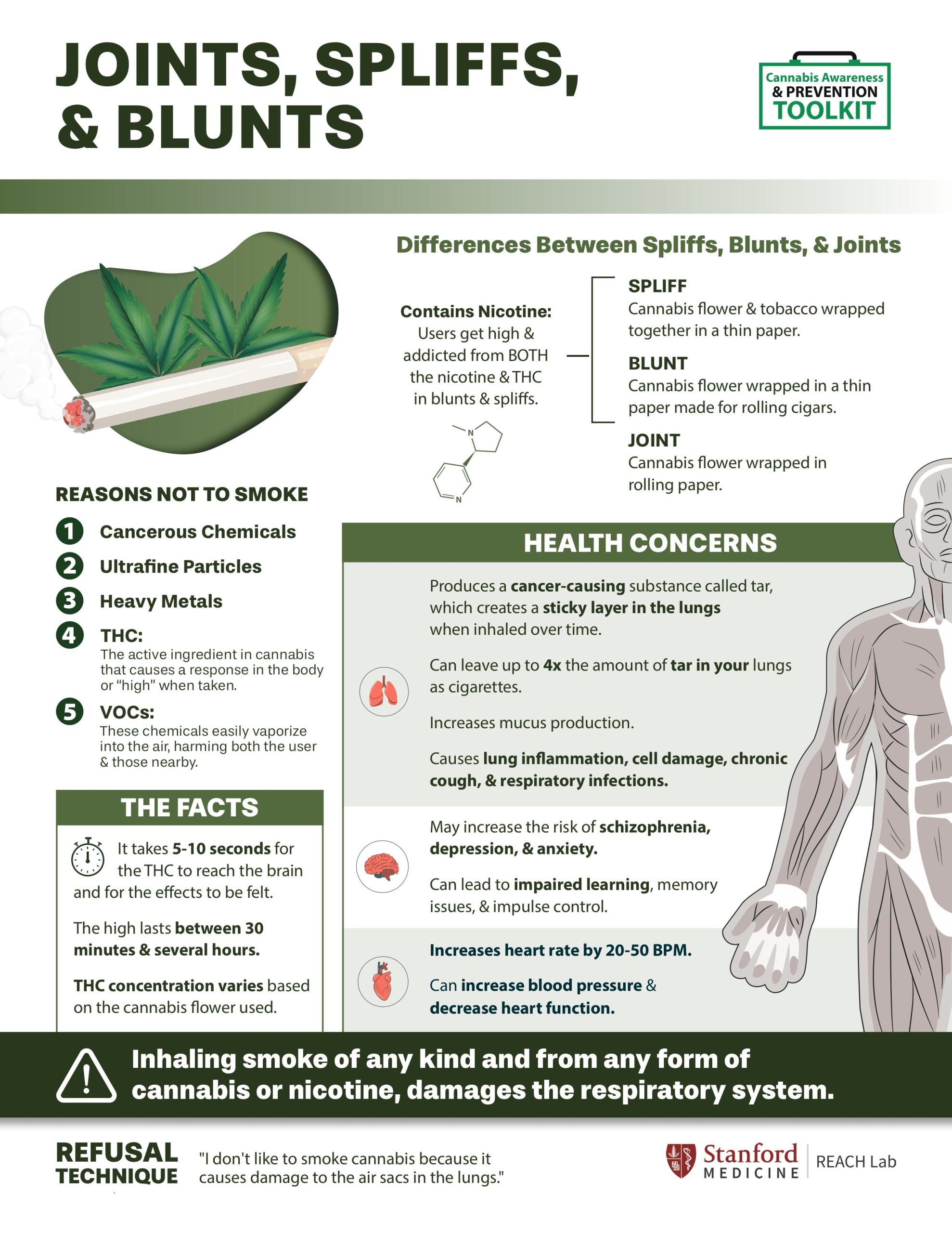 Fact: The harms related to cannabis use are real like risk of addiction and effects on brain development. - Myth: “Everyone is using cannabis”