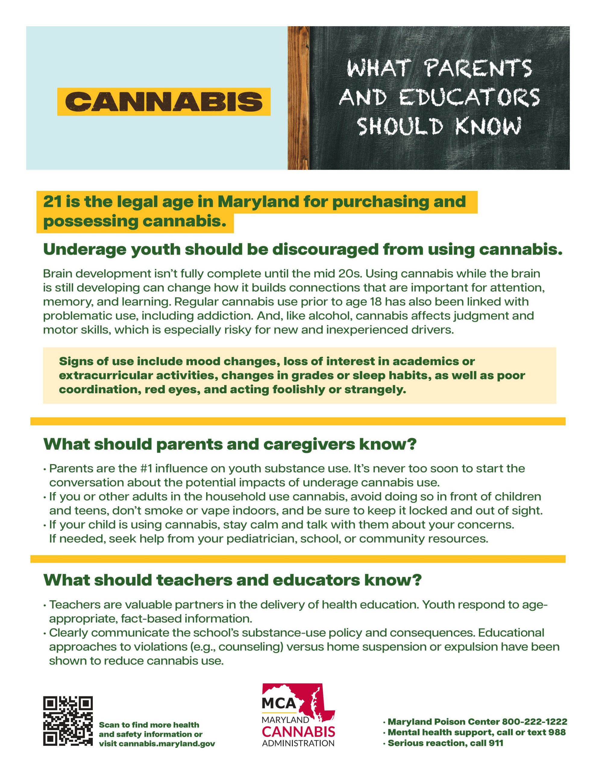 - Maryland Cannabis Administration — Talking to Teens Brochure (PDF)