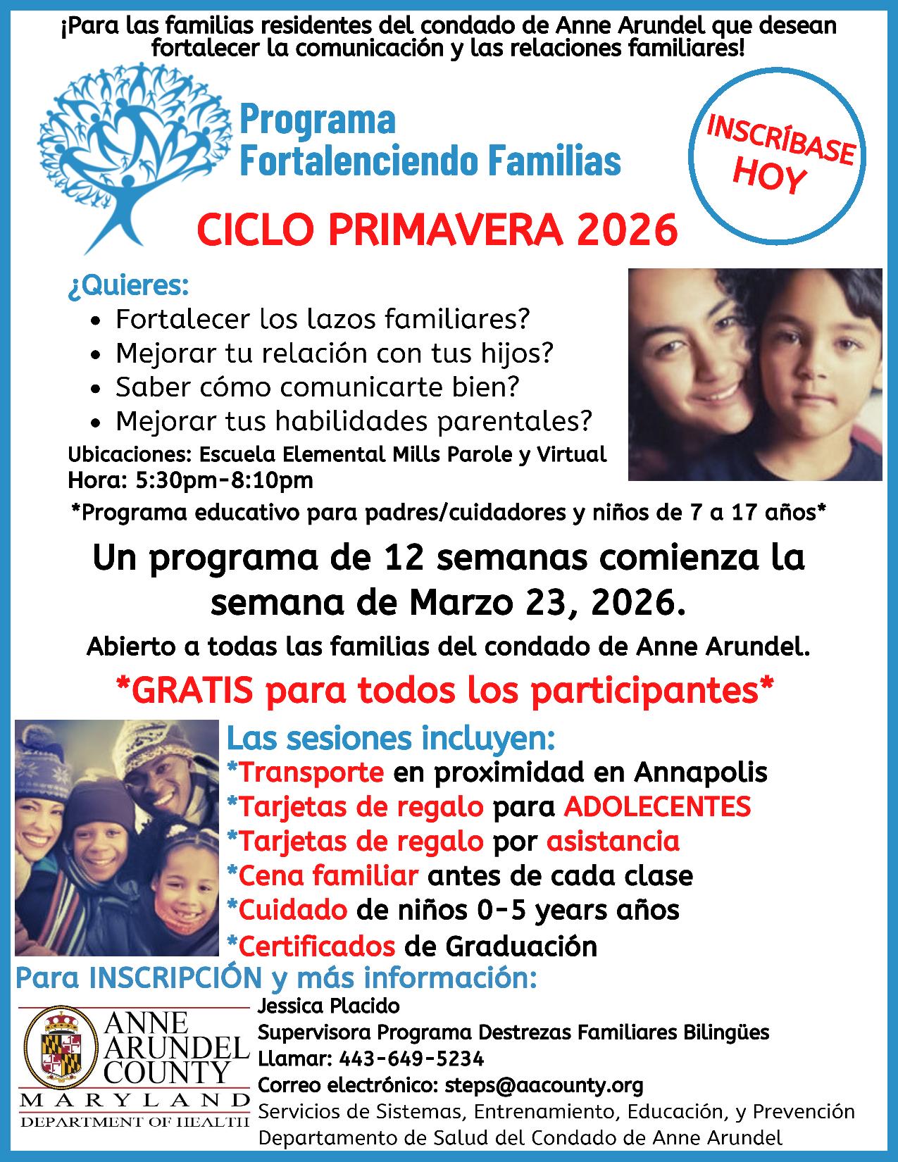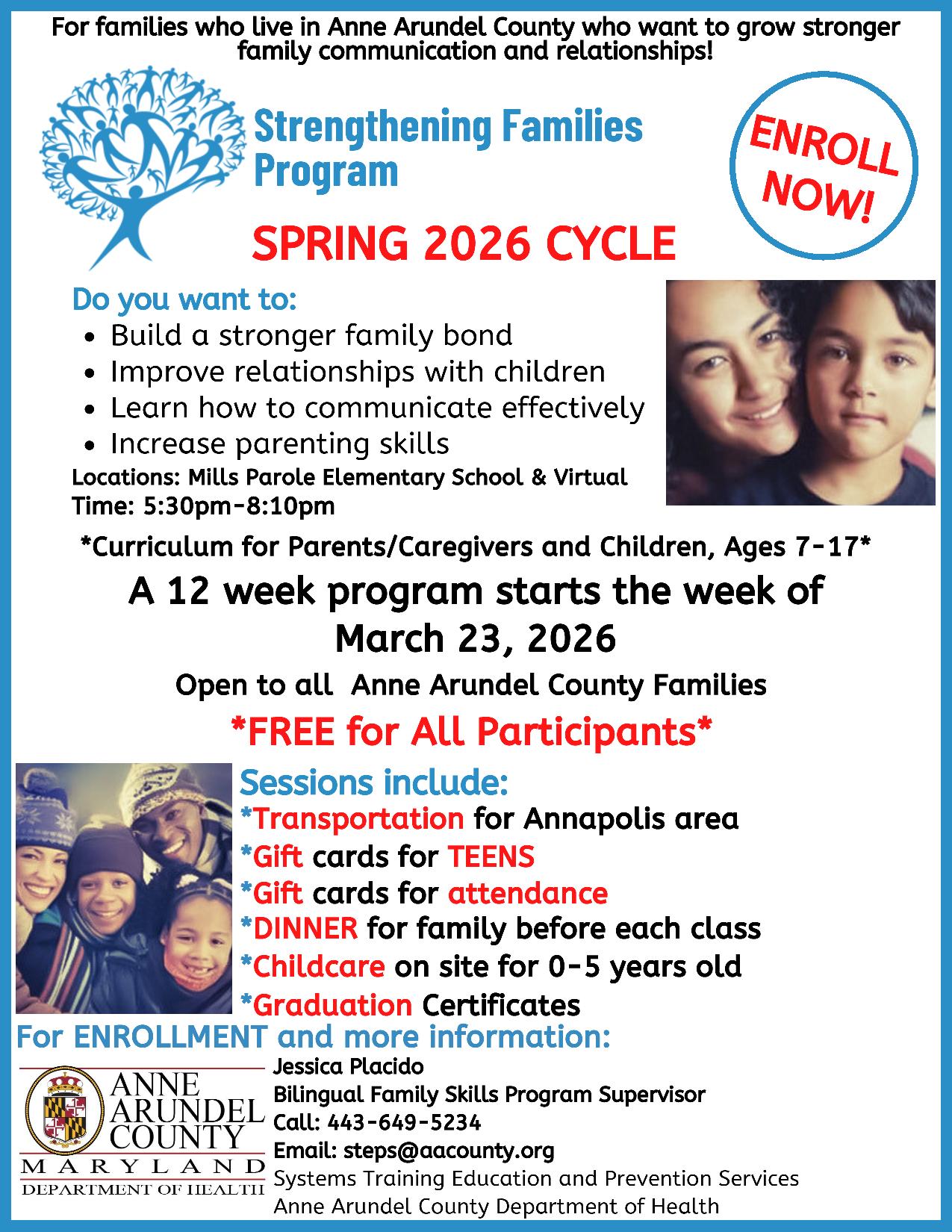Contact: Andreina Fonseca, Strengthening Families Program Supervisor at 410-507-5147/hdfons22@aacounty.org